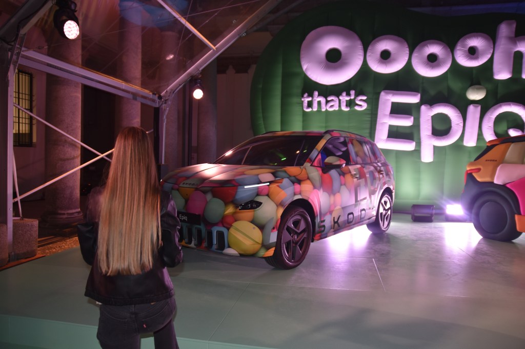 L’installazione funge da palcoscenico per la nuova Škoda Epiq, un SUV elettrico lungo circa 4,1 metri che incarna il nuovo linguaggio stilistico Modern Solid del marchio. Il design si concentra su flessibilità e funzionalità, offrendo uno spazio interno generoso nonostante le dimensioni compatte, ideale per un pubblico giovane e urbano.