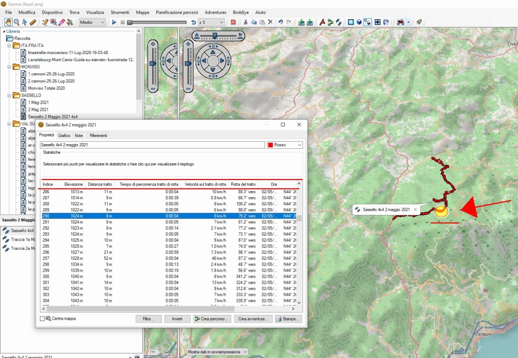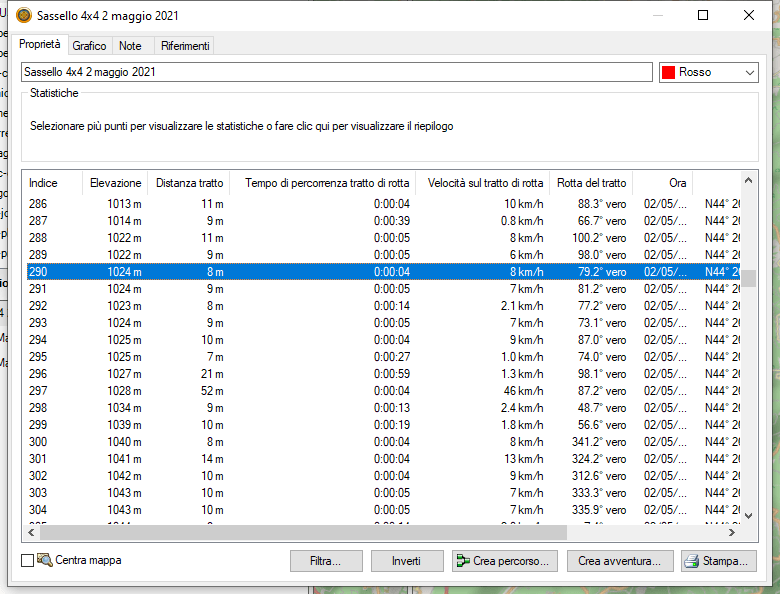 Ricordo che selezionando i punti sul percorso con il mouse, abbiamo la possibilità di vedere ed analizzare il punto specifico per poter poi anche far delle modifiche, aggiungere note ed altro..